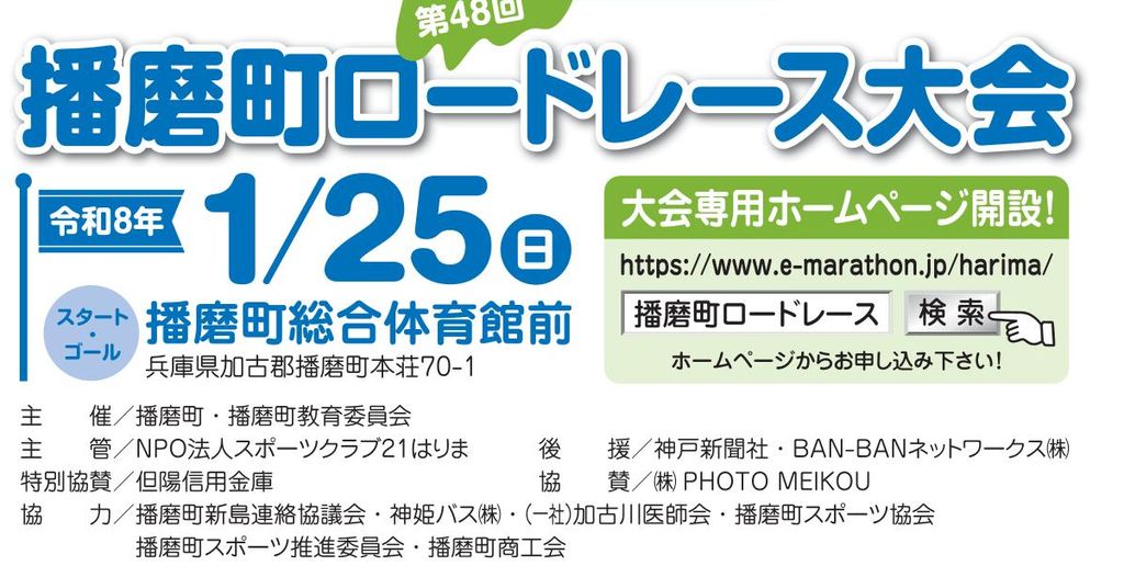 【お問い合わせ】播磨町ロードレース大会事務局(NPO法人スポーツクラブ21はりま内)