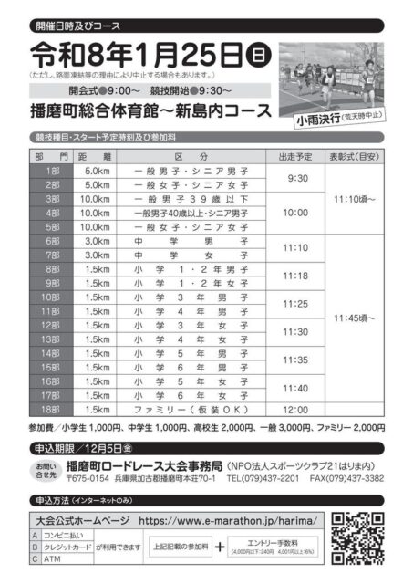 - 大会専用ホームページ開設!(https://www.e-marathon.jp/harima/)