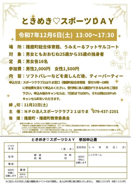 主催:NPO法人スポーツクラブ21はりま ☎079-437-2201