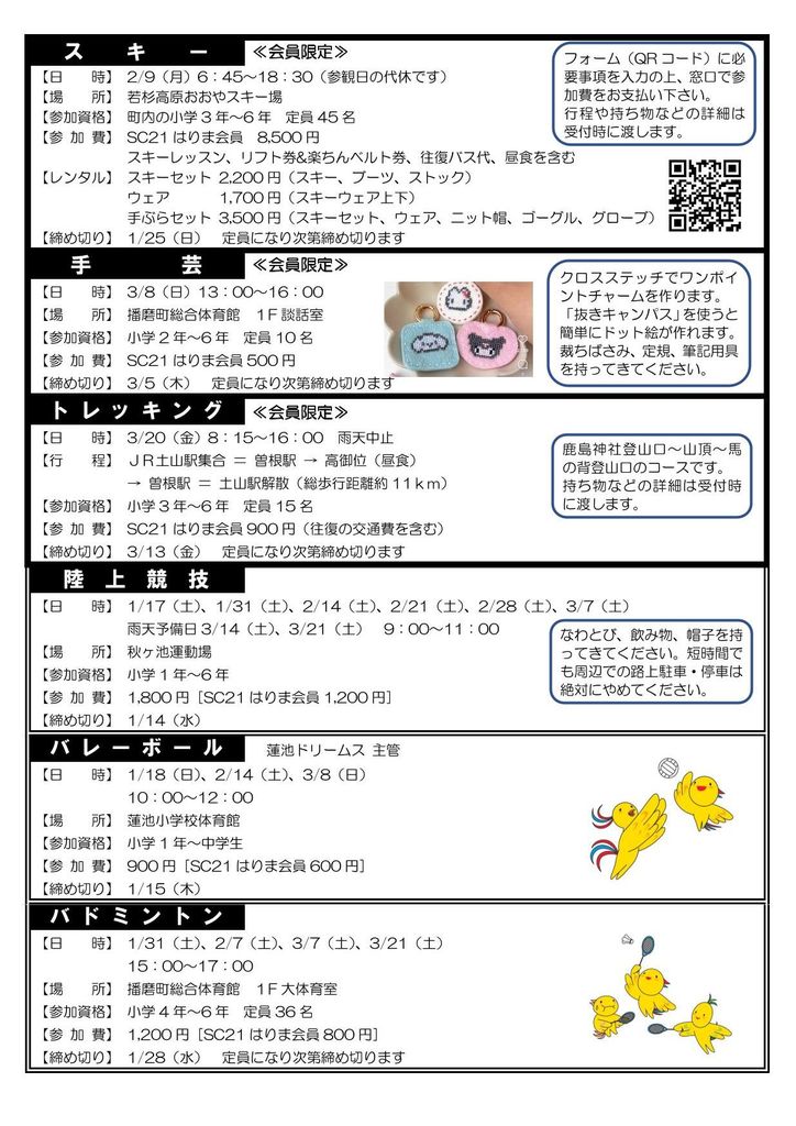 ● SC21 はりま非会員 保険料は教室参加費に含まれます