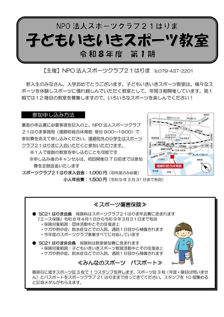 主催:NPO法人スポーツクラブ21はりま 後援:播磨町教育委員会